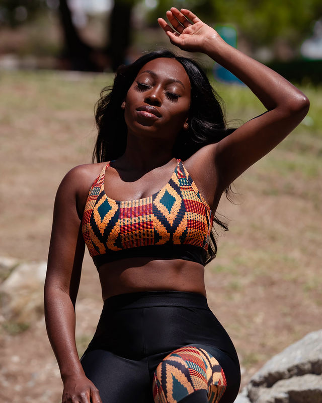 This flattering bra features a versatile design that works beautifully for moderate workouts, light warm-ups or daily chores. The flexible, 4-way stretch of the fabric lets you move freely featuring a classic crisscross back, elegant scoop neckline eye-catching regal prints sure to make a cultural statement wherever you go.
